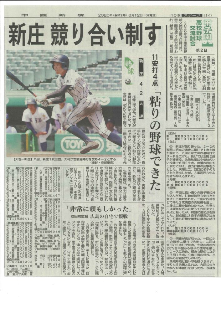 春の甲子園出場校の交流試合で躍動してくれた新庄野球部メンバー
